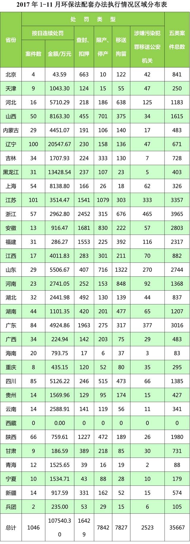 環保部想媒體通報2017年1-11月各地執行《環境保護法》配套辦法及移送環境犯罪案件的情況。并對1-11月份案件較多的浙江、江蘇、廣東、安徽、山東、福建等地進行表揚。