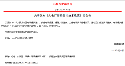 關(guān)于發(fā)布《火電廠污染防治技術(shù)政策》的公告