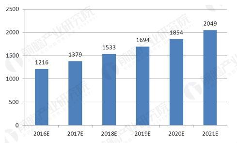 2016-2021年中國合同能源管理行業(yè)投資規(guī)模預測圖(單位:億元)
