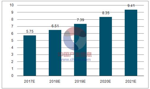 據(jù)估算,2017 年中國節(jié)能環(huán)保產(chǎn)業(yè)產(chǎn)值將達到 5.75 萬億元,未來五年(2017-2021)年均復(fù)合增長率約為 13.10%,2021年中國節(jié)能環(huán)保產(chǎn)業(yè)產(chǎn)值將達到 9.41萬億元。