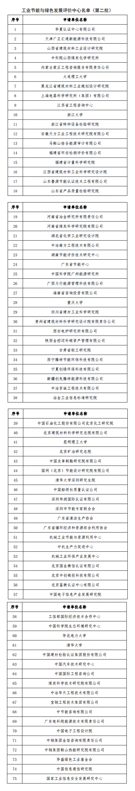 工信部發(fā)布:工業(yè)節(jié)能與綠色發(fā)展評(píng)價(jià)中心名單(第二批)