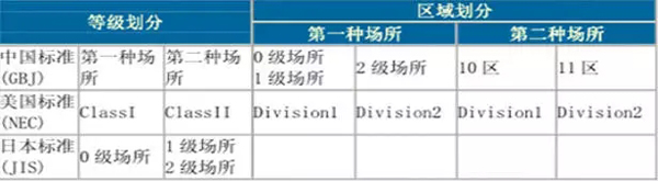 (1)在爆炸性氣體區(qū)域(0區(qū)、1區(qū)、2區(qū))不同電氣設備使用安全級別的劃分。如旋轉電機選型分為隔爆型(代號d)、正壓型(p)、增安型(e)、無火花型(n)