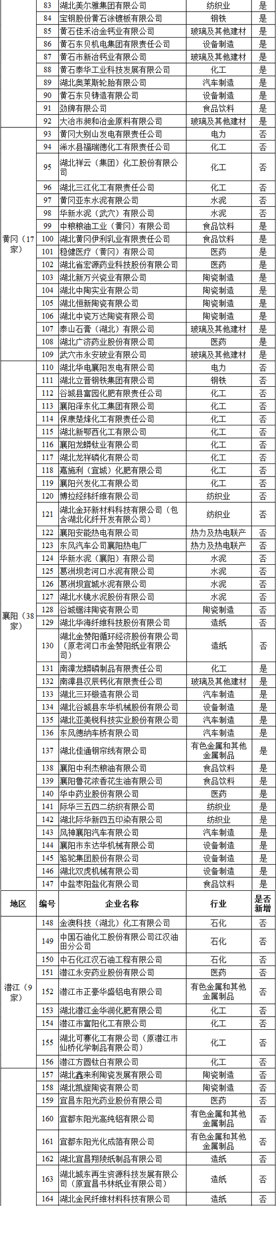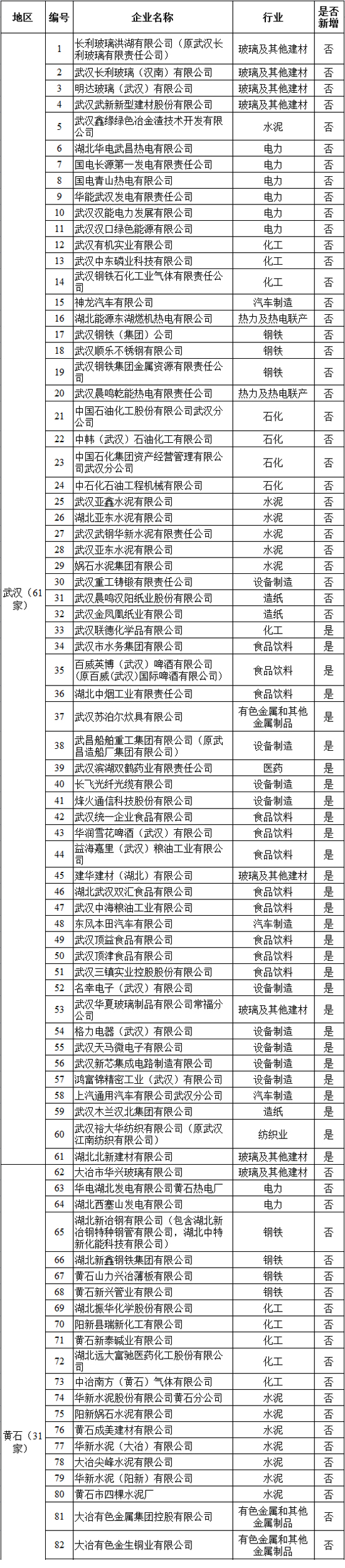 根據對我省2014—2016年任一年綜合能耗1萬噸標準煤及以上的工業企業碳排放核查的結果,確定344家企業作為2017年納入碳排放配額管理的企業(以下簡稱“納入企業”),涉及電力、鋼鐵、水泥、化工等15個行業。具體行業和企業見2017年湖北省納入碳排放配額管理企業清單(附件2)。