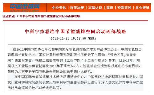 中科宇杰看準中國節能減排空間啟動西部戰略