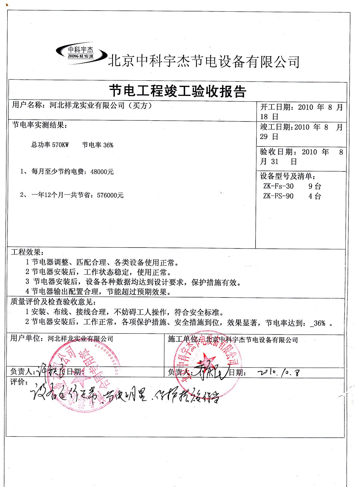 安裝調(diào)試驗(yàn)收,節(jié)能效率達(dá)到36%,投資回報(bào)期一年半,按質(zhì)保十年計(jì)算,此項(xiàng)節(jié)能工程能為祥龍實(shí)業(yè)帶來570萬以上人民幣的直接效益。