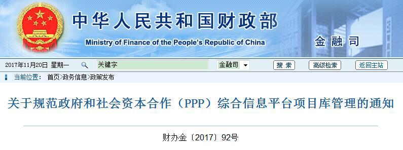 投資額達(dá)17.8萬億元的PPP項(xiàng)目庫管理進(jìn)一步從嚴(yán)規(guī)范。11月16日,財(cái)政 部公布《關(guān)于規(guī)范政府和社會(huì)資本合作(PPP)綜合信息平臺(tái)項(xiàng)目庫管理的通知》(以下簡稱《通知》)。